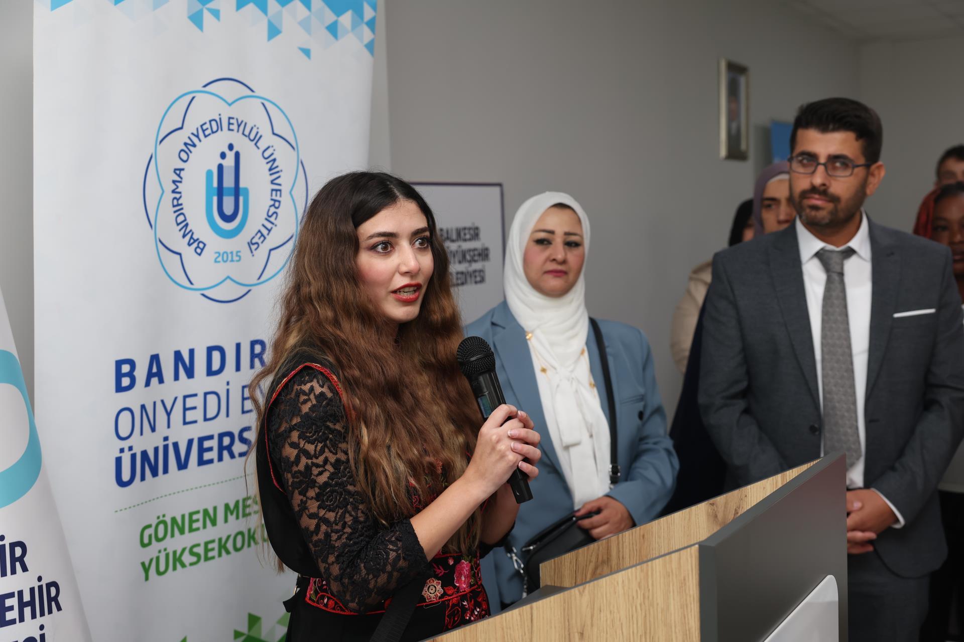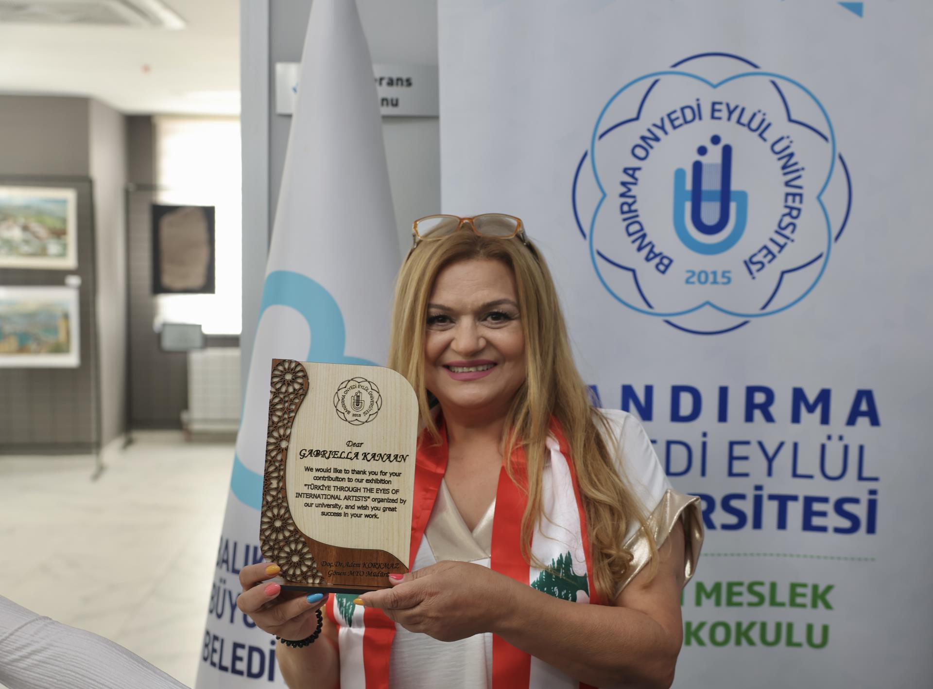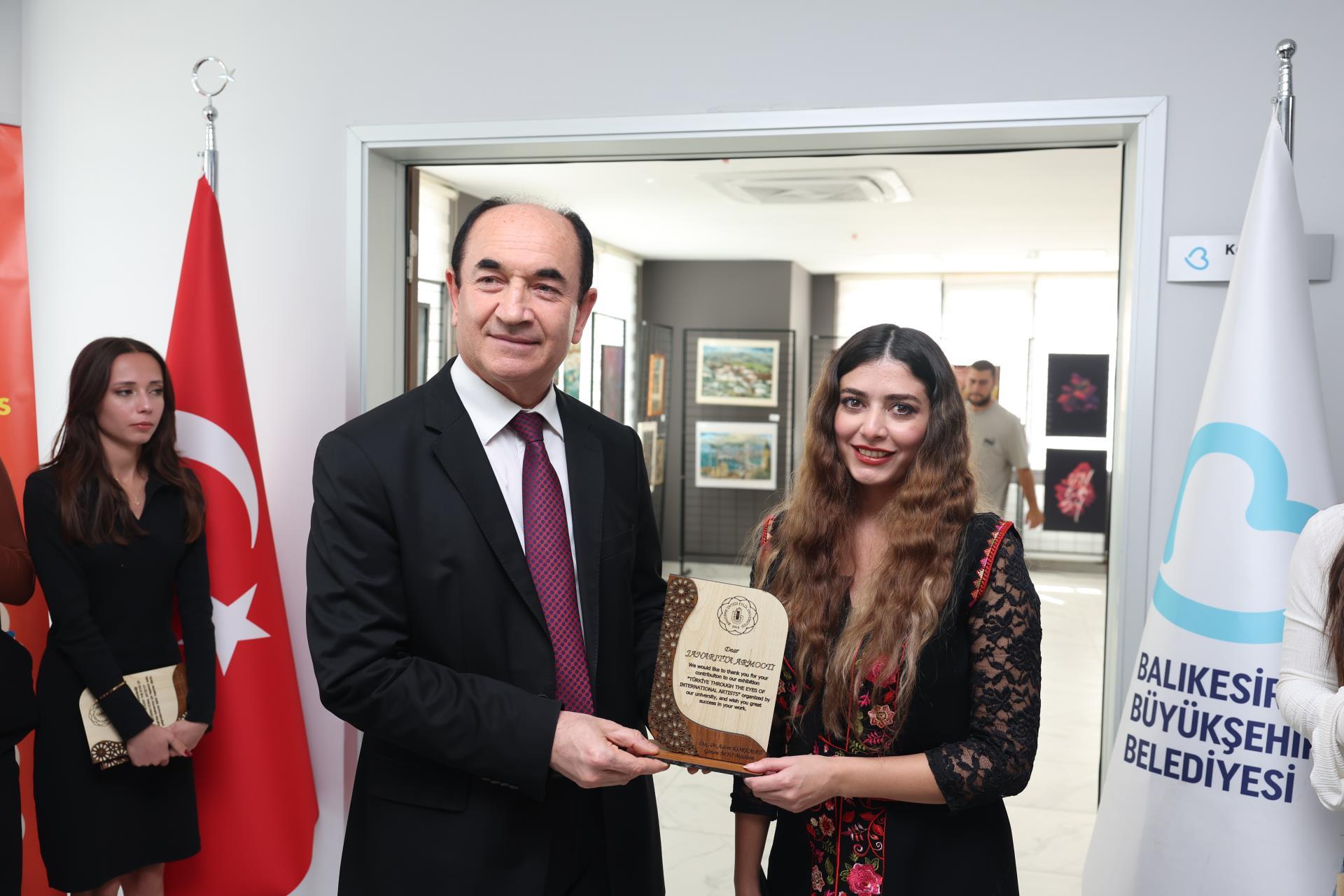 Program sonunda Rektörümüz Prof. Dr. İsmail Boz, küratör Gabriella Kanaan’a; Gönen Kaymakamı Ahmet Altıntaş, Janaritta Armooti’ye; Gönen MYO Müdürü Doç. Dr. Adem Korkmaz, serginin onur konuğu Doç. Dr. Eda Öz Çelikbaş’a; Gönen Belediye Başkan Yardımcısı Mehmet Yılman ise Gönen Kent Konseyi Başkanı Samet Arıker'e plaket takdiminde bulundu.