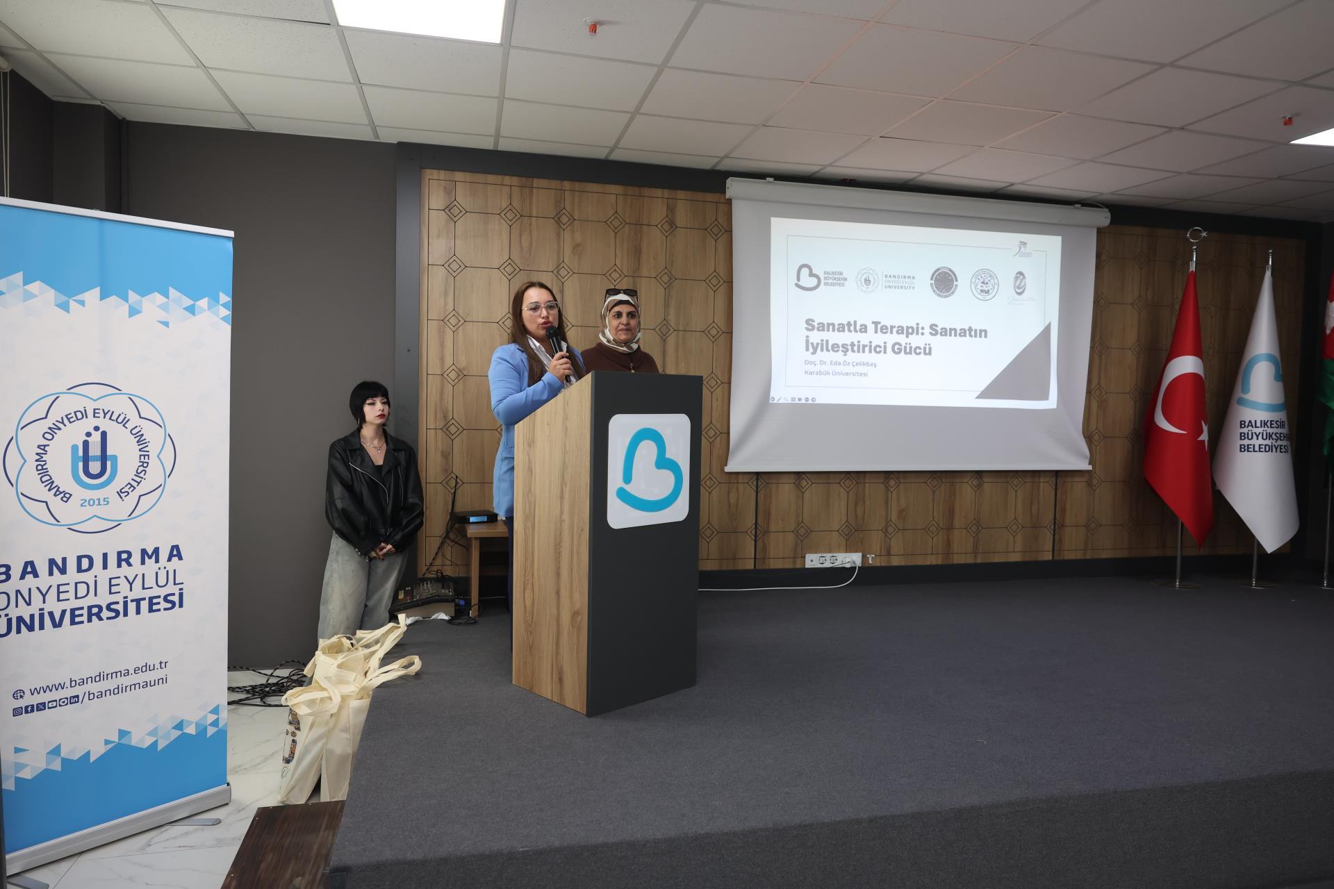 Etkinlikte Karabük Üniversitesi Safranbolu Fethi Toker Güzel Sanatlar ve Tasarım Fakültesi Öğretim Üyesi Doç. Dr. Eda Öz Çelikbaş, “Sanat Terapi; Sanatın İyileştirici-Birleştirici Gücü ve İyi Oluşa Etkisi” başlıklı sunumuyla konuşmacı olarak yer aldı. Söyleşi sırasında dış ülkelerden gelen konuklarımıza okulumuz İlahiyat Fakültesi öğretim elemanlarından Öğr. Gör. Mona Emam, tercümanlık yaptı.